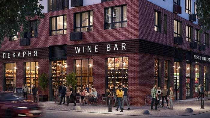 В составе объекта есть торгово-общественный комплекс, собственная баня у леса и SPA-центр.