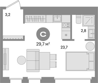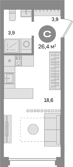 Площадь от 26.4 м2