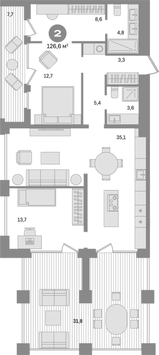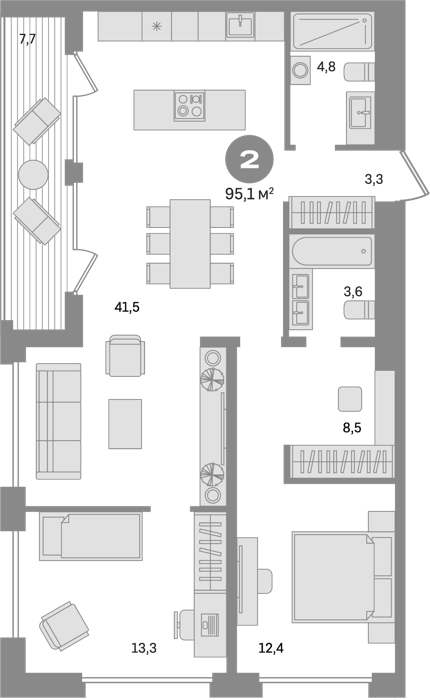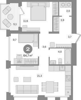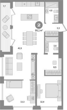 В комплексе предложен широкий выбор планировочных решений: в наличии квартиры как классического типа, так и европланировки. Есть и уникальные форматы: двухуровневые квартиры, квартиры с видовыми террасами и пентхаусы. Все квартиры сдаются с подчистовой отделкой.