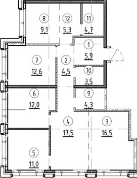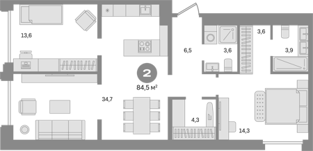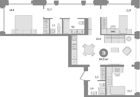 Площадь от 84.5 м2