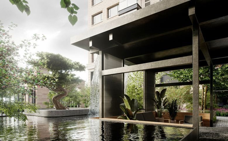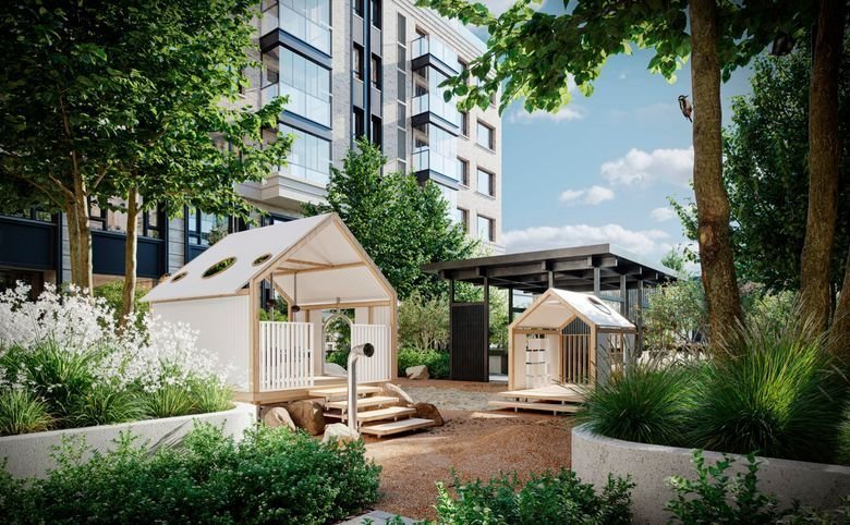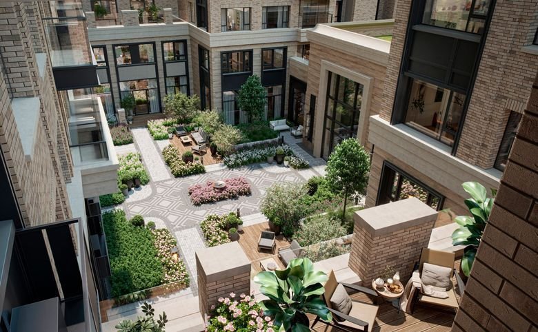 Комплекс имеет два приватных двора. Первый — гостевой, с зонами для отдыха под открытым небом. Второй — более традиционный, с детскими, игровыми и спортивными площадками.